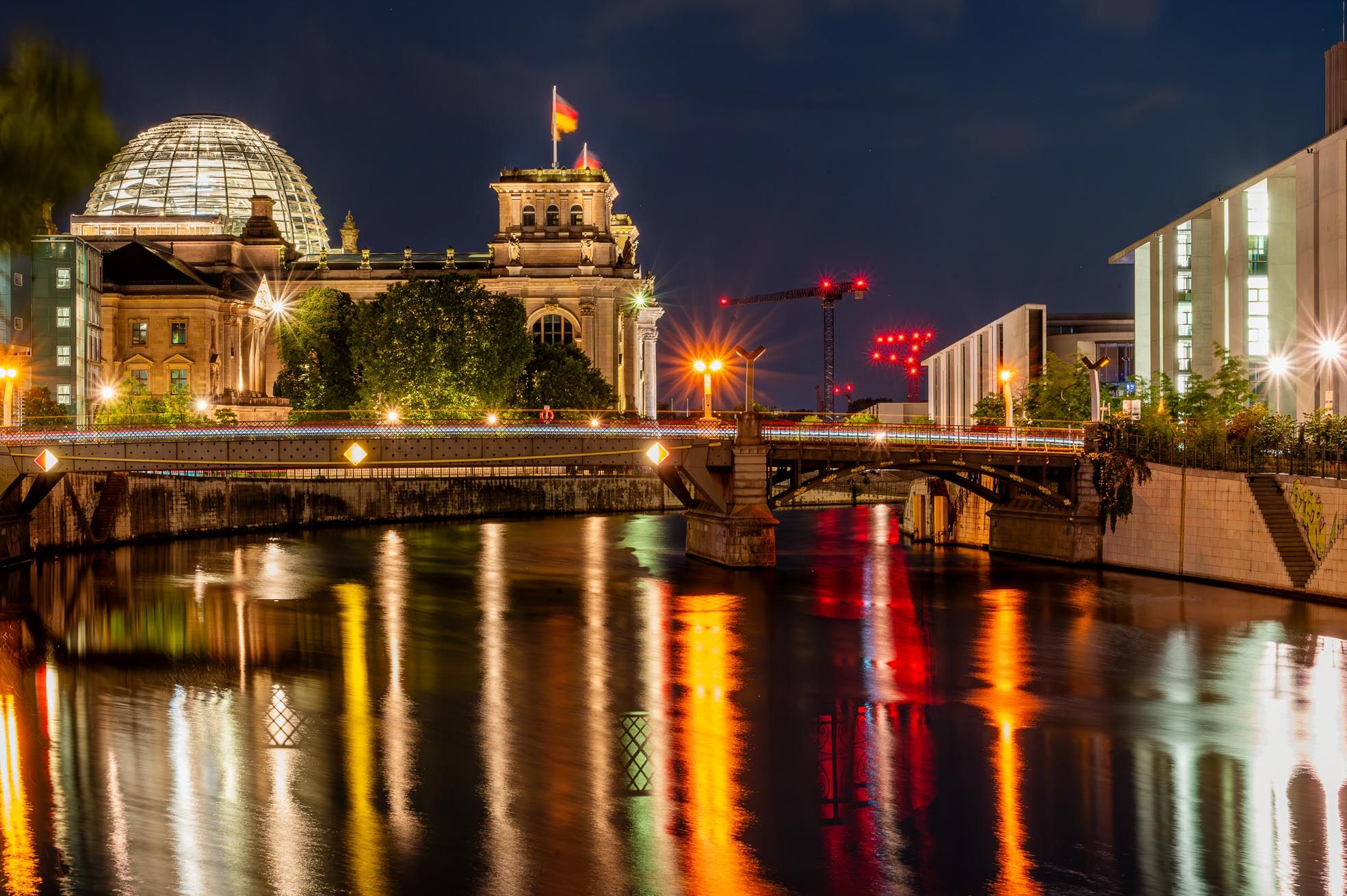 Anschließend führt die Route am Reichstag vorbei durch das Regierungsviertel entlang der Spree. Wasserreflexionen, Architektur und Lichtstimmungen schaffen perfekte Voraussetzungen für ruhige Langzeitbelichtungen. Den Abschluss bilden urbane Strukturen rund um den Bahnhof Friedrichstraße – von grafisch klar bis atmosphärisch weich.